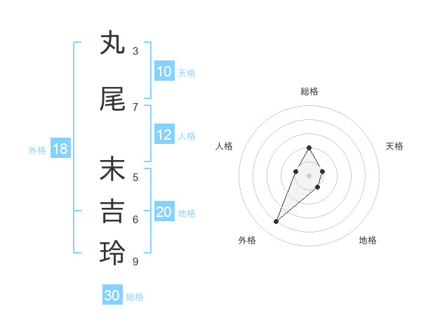 丸尾 末吉玲さんの総格は30画の2点!