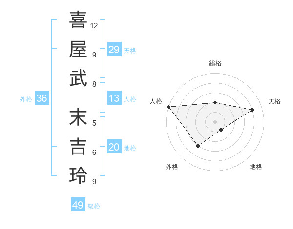 喜屋武 末吉玲さんを姓名の画数から五運を鑑定