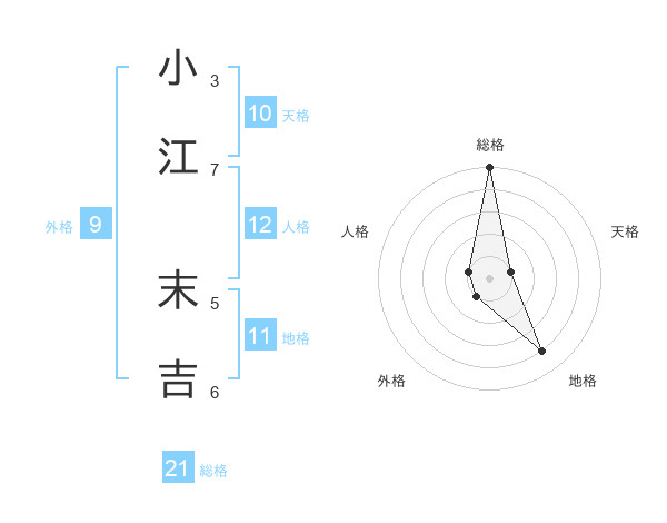 小江 末吉さんの総格は21画の5点!