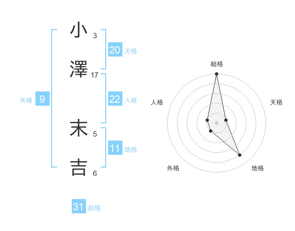 小澤 末吉さんの総格は31画の5点!