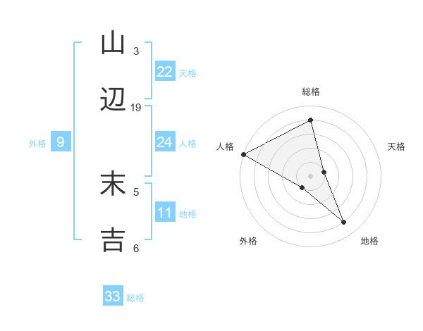 山辺 末吉さんの総格は33画の4点!