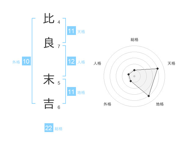 比良 末吉さんの総格は22画の1点!