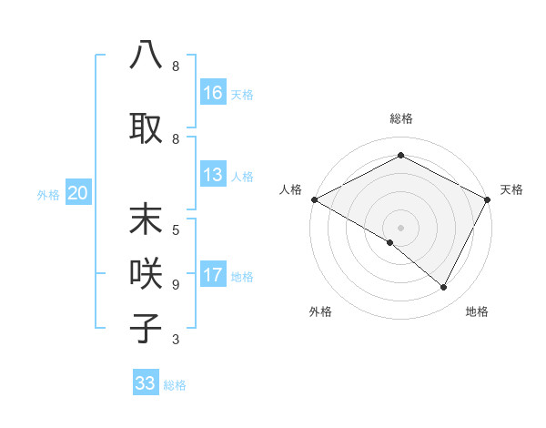 八取 末咲子さんの天格は16画の5点!