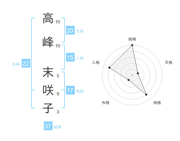 高峰 末咲子さんの総格は37画の5点!