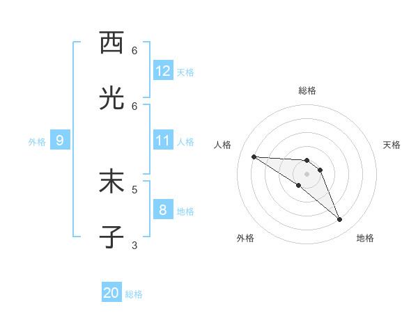 西光 末子さんの総格は20画の1点