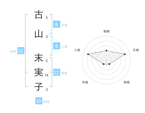 本サイトの鑑定結果の正当性は保証しません。鑑定結果は参考程度にお読みください。実際の名づけにご利用される場合は、姓名判断についてご自身でよくお調べください。