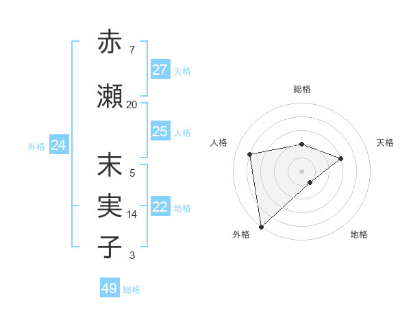 赤瀬 末実子さんを姓名の画数から五運を鑑定
