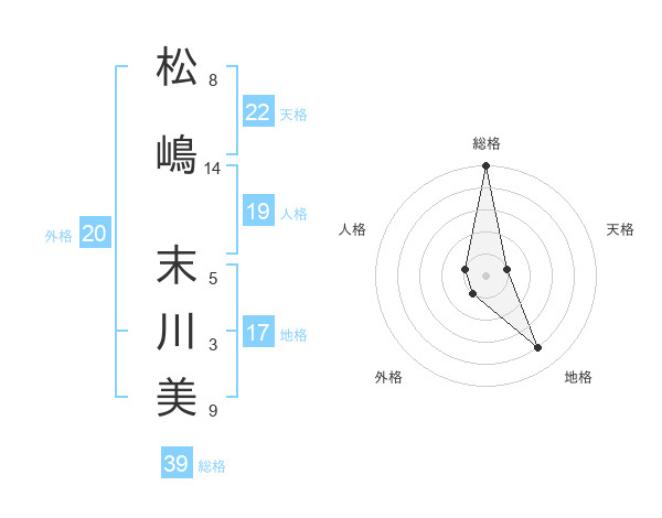 松嶋 末川美さんを姓名の画数から五運を鑑定