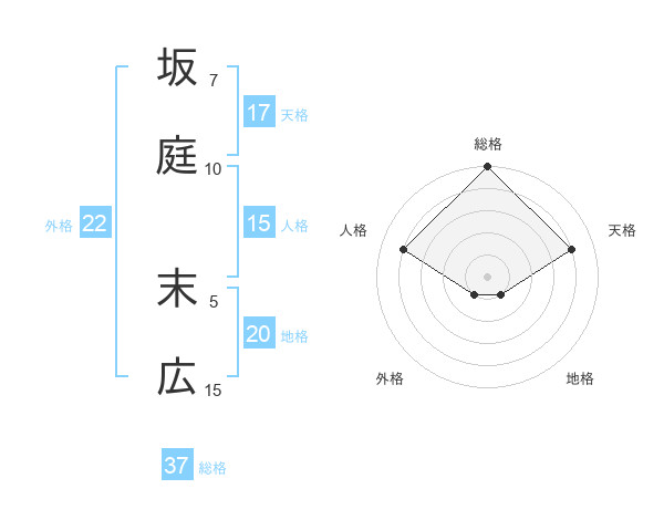 坂庭 末広さんの総格は37画の5点!