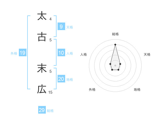 太古 末広さんの総格は29画の4点!