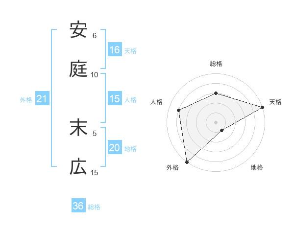 安庭 末広さんの天格は16画の5点!