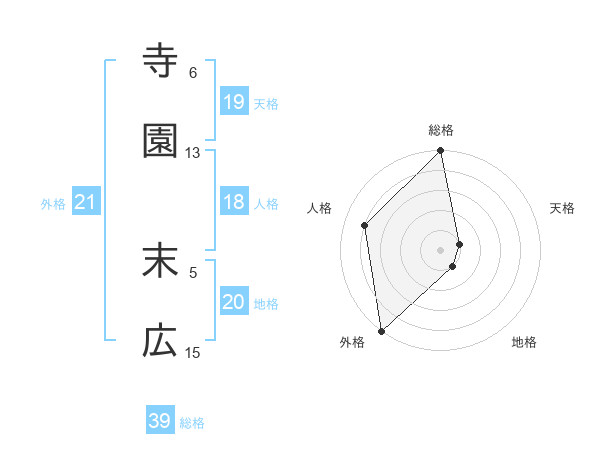 寺園 末広さんの外格は21画の5点!