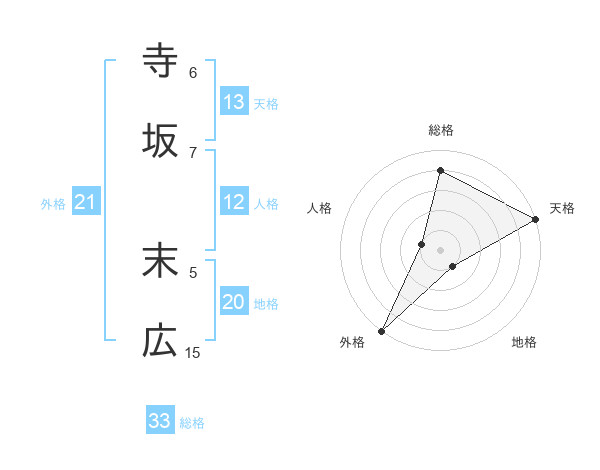 寺坂 末広さんの総格は33画の4点!