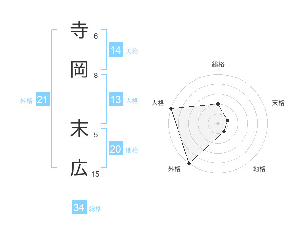 寺岡 末広さんの外格は21画の5点!