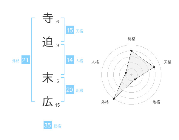 寺迫 末広さんを姓名の画数から五運を鑑定