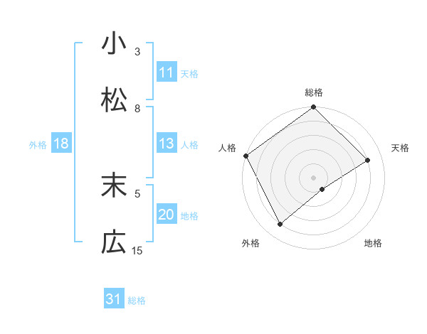 小松 末広さんの総格は31画の5点!