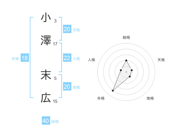 小澤 末広さんの地格は20画の1点!