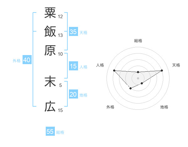 粟飯原 末広さんを姓名の画数から五運を鑑定