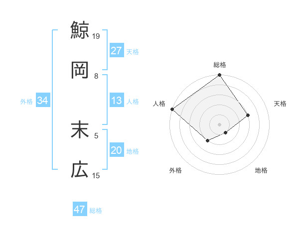 鯨岡 末広さんを姓名の画数から五運を鑑定