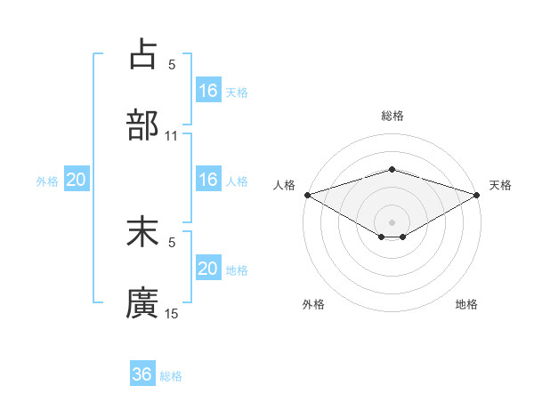 占部 末廣さんの天格は16画の5点!
