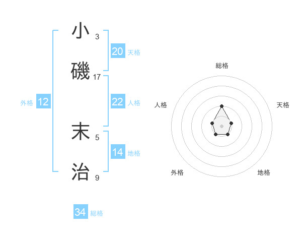 小磯 末治さんの総格は34画の2点!
