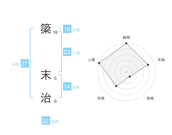 簗 末治さんの総格は32画の5点!