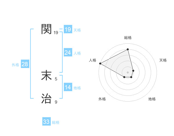 関 末治さんの総格は33画の4点!