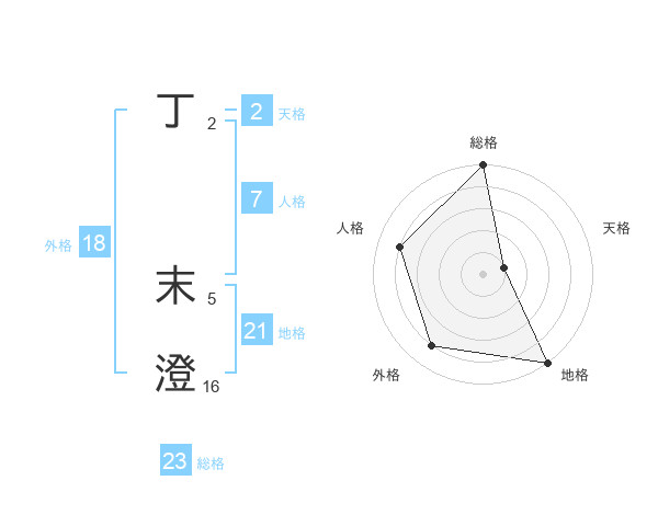丁 末澄さんの地格は21画の5点!