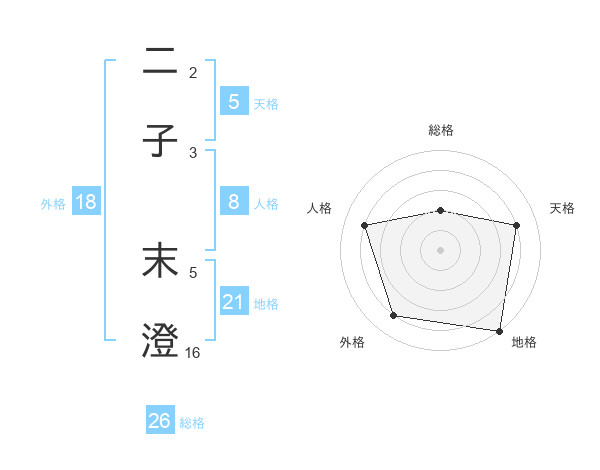 二子 末澄さんの天格は5画の4点!