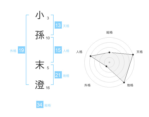 小孫 末澄さんを姓名の画数から五運を鑑定