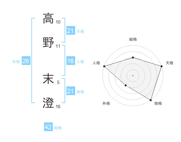 高野 末澄さんの地格は21画の5点!