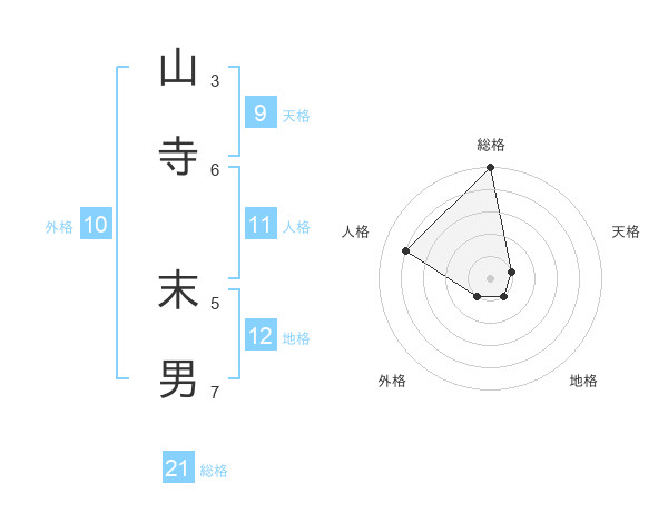 山寺 末男さんの総格は21画の5点!