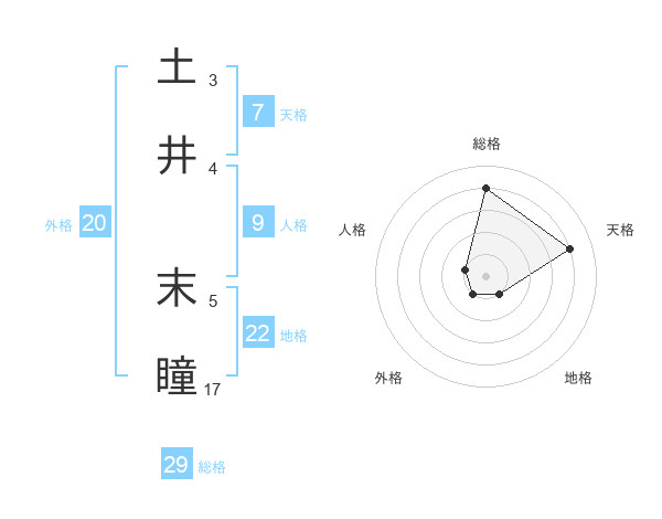 土井 末瞳さんを姓名の画数から五運を鑑定