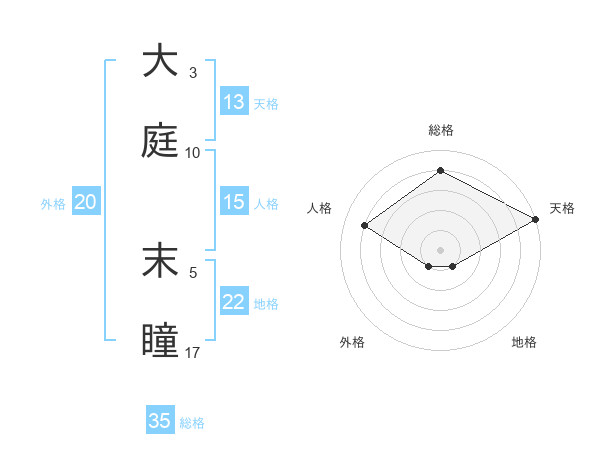 大庭 末瞳さんの天格は13画の5点!