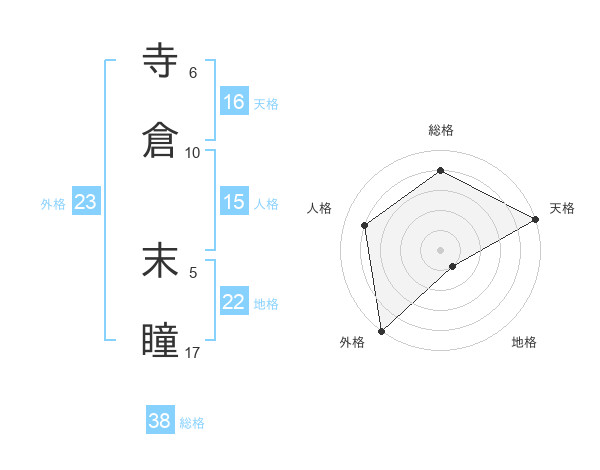 寺倉 末瞳さんの天格は16画の5点!