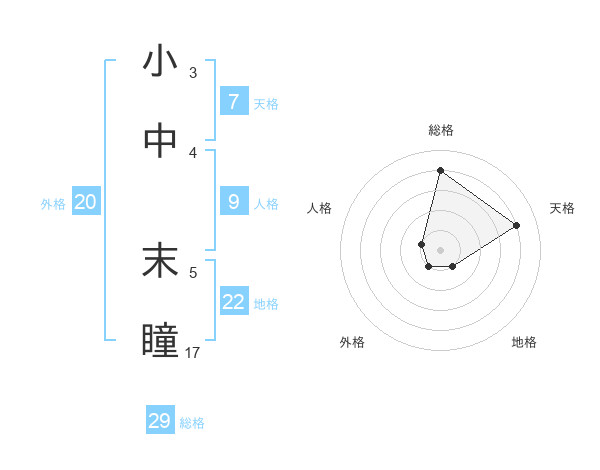 小中 末瞳さんの総格は29画の4点!