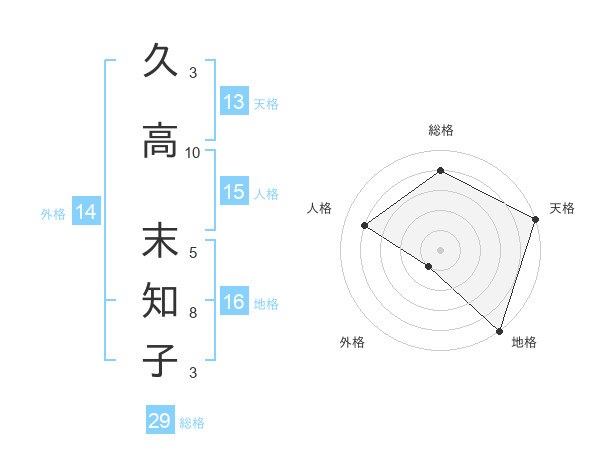 久高 末知子さんの総格は29画の4点!