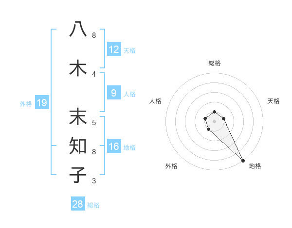 八木 末知子さんの総格は28画の1点!