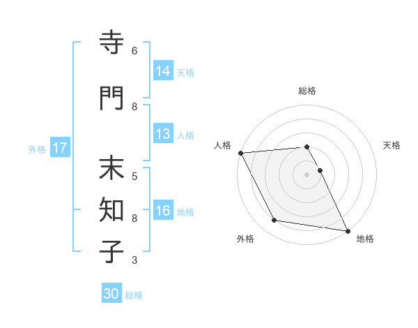寺門 末知子さんの総格は30画の2点!