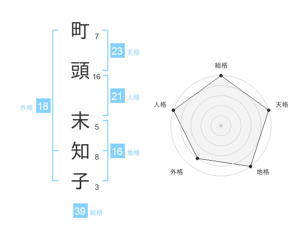 町頭 末知子さんの人格は21画の5点!