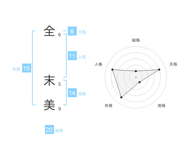 全 末美さんの外格は15画の4点!