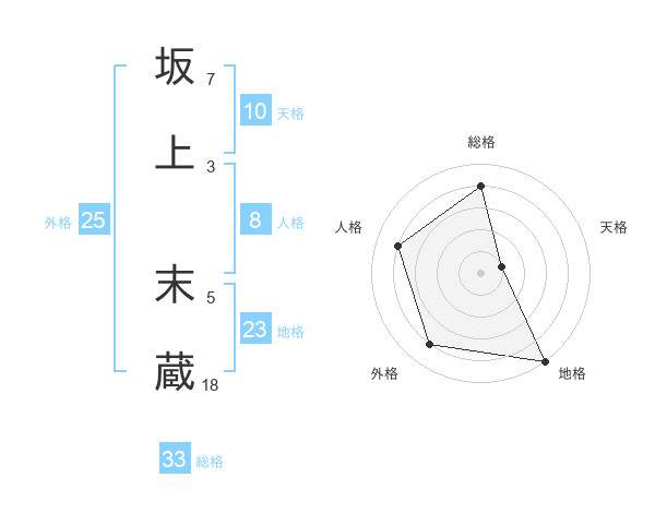 坂上 末蔵さんを姓名の画数から五運を鑑定