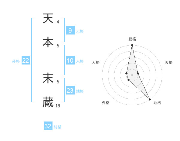 天本 末蔵さんの総格は32画の5点!