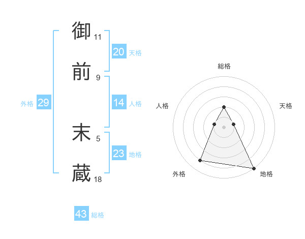 御前 末蔵さんを姓名の画数から五運を鑑定