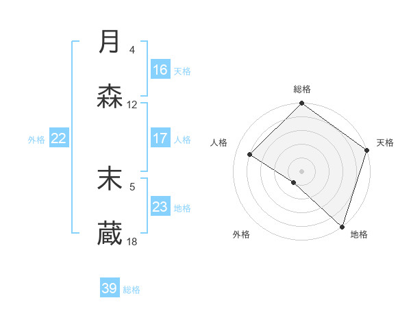 月森 末蔵さんを姓名の画数から五運を鑑定