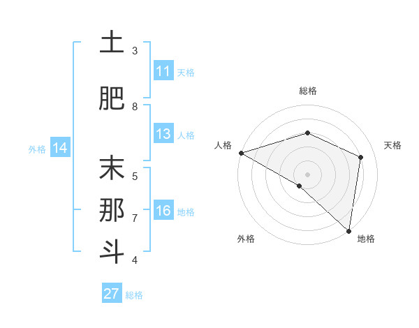 土肥 末那斗さんを姓名の画数から五運を鑑定
