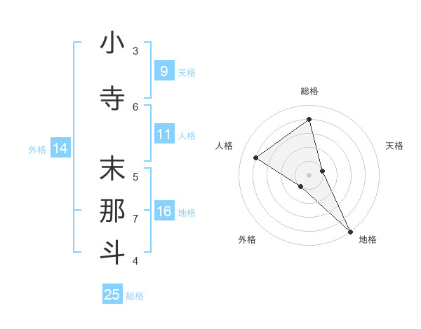 小寺 末那斗さんを姓名の画数から五運を鑑定