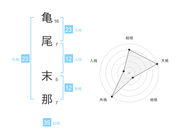 亀尾 末那さんを姓名の画数から五運を鑑定