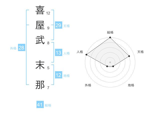 喜屋武 末那さんを姓名の画数から五運を鑑定
