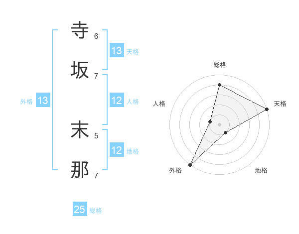 寺坂 末那さんを姓名の画数から五運を鑑定